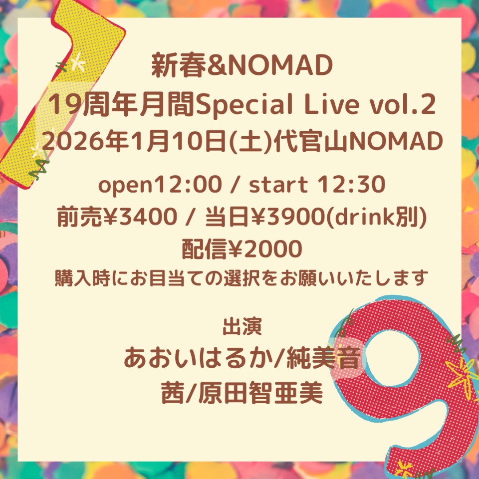 前売2800円 当日3300円(各ドリンク別)